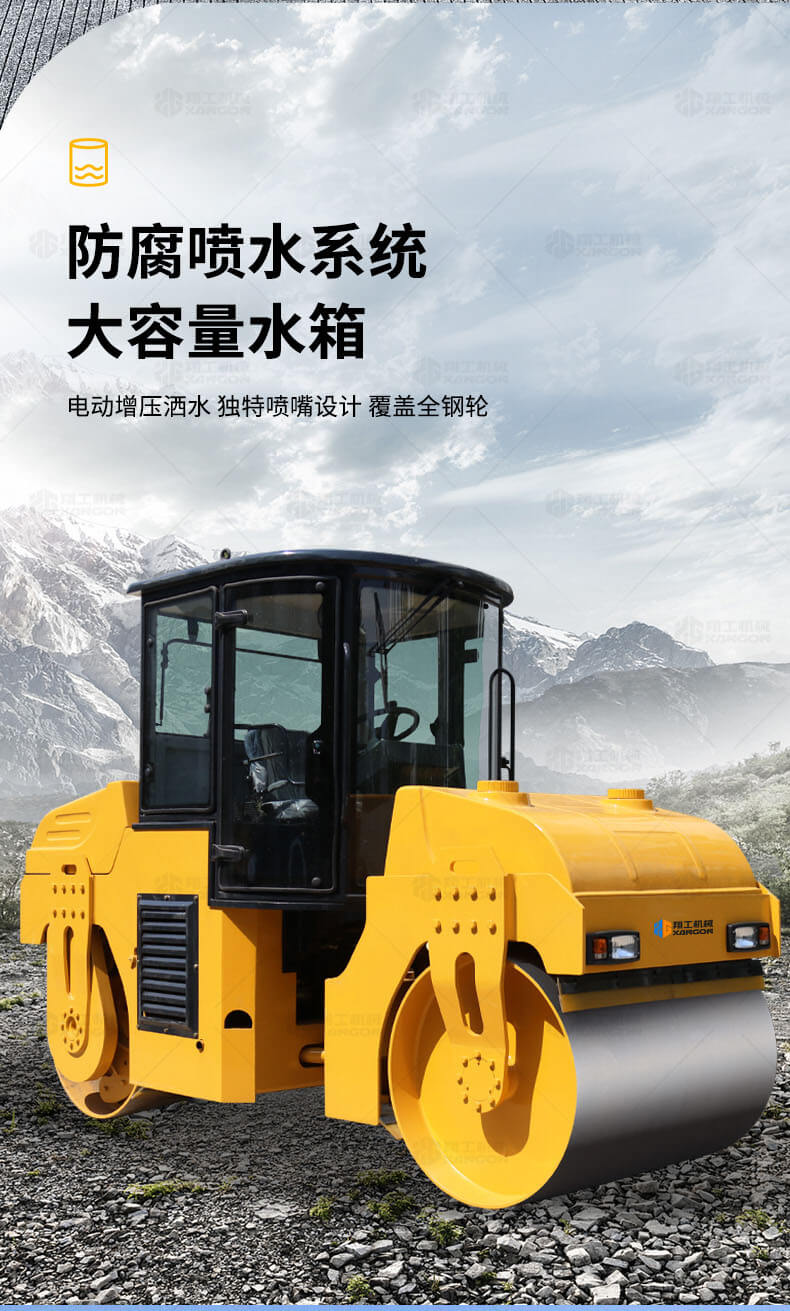 XGC6型振動(dòng)壓路機(jī)(SAC6CD型振蕩壓路機(jī))是一種串聯(lián)式的雙鋼輪型振動(dòng)(蕩)壓實(shí)機(jī)械;該機(jī)主要由鉸接式車架、振動(dòng)(蕩)輪、轉(zhuǎn)向輪,動(dòng)力裝置、液壓振動(dòng)、液壓轉(zhuǎn)向、操縱機(jī)構(gòu)、電動(dòng)灑水和電氣系統(tǒng)等主要部分組成。