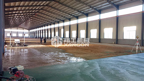 在手扶混凝土攤鋪機整平頭有用的施工范圍內(nèi),首先人工將混凝土初平至比地坪標高高1-2㎝(具體高度依混凝土坍落度而定),然后用手扶混凝土攤鋪機一次性完成振搗、壓實、整平工作。