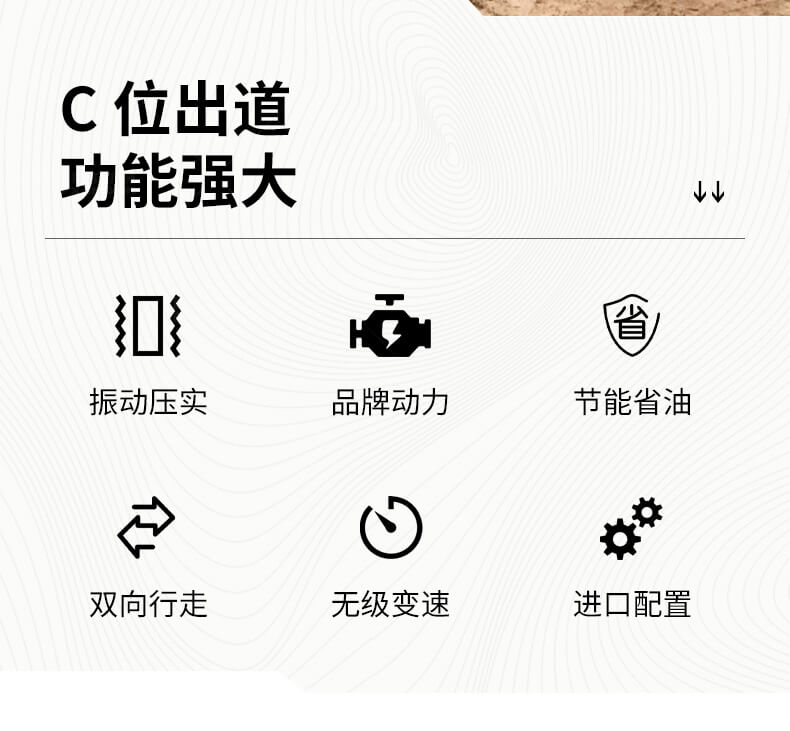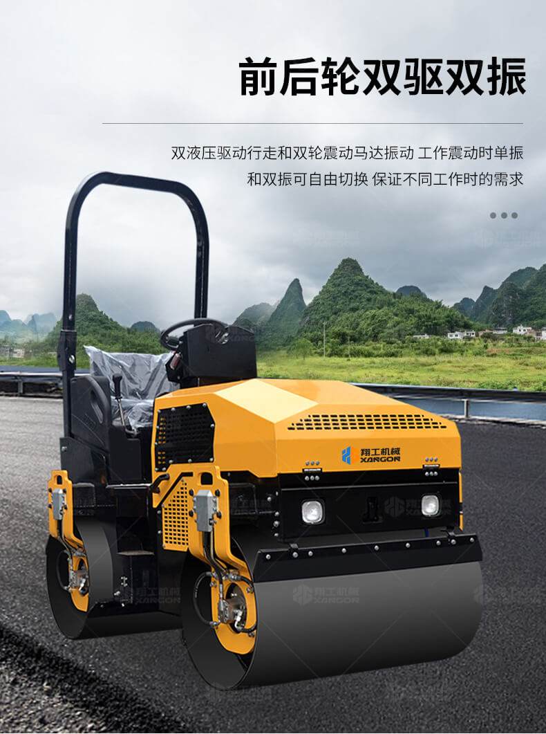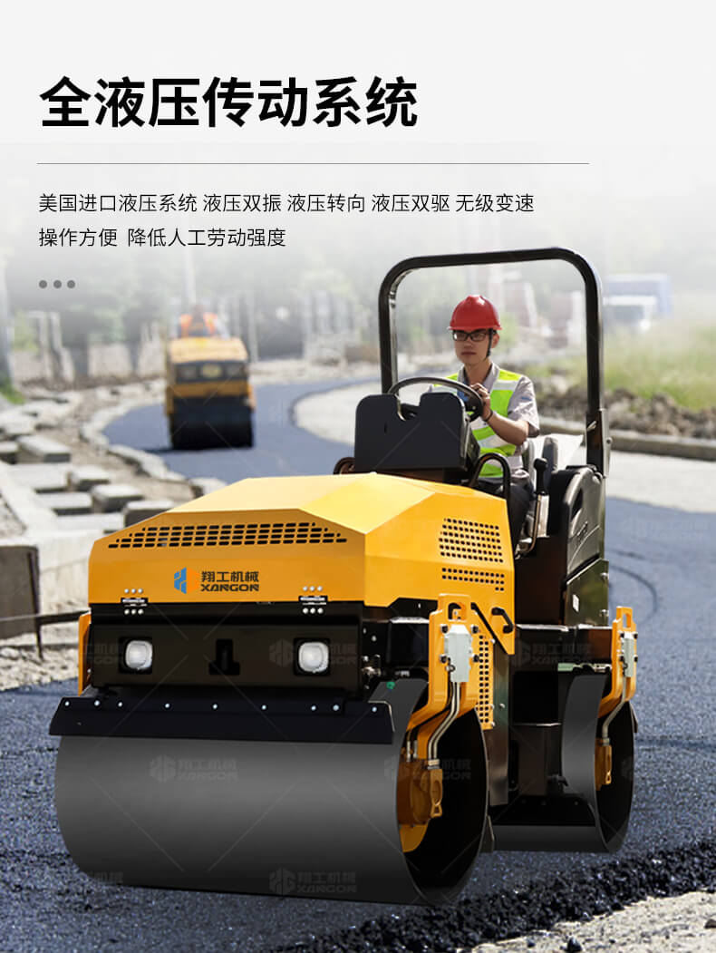采用進(jìn)口液壓系統(tǒng),雙驅(qū)雙振,前后輪可單獨(dú)調(diào)節(jié)振動(dòng),亦可同時(shí)振動(dòng)。液壓轉(zhuǎn)向,液壓驅(qū)動(dòng),液壓行走,液壓振動(dòng)。進(jìn)口英國(guó)鉑金斯柴油機(jī)三缸水冷四沖程,動(dòng)力強(qiáng)勁,性能穩(wěn)定。超快速度一小時(shí)可達(dá)12千米,無極變速。壓土,碎石,壓瀝青,壓回填土效果超乎想象。