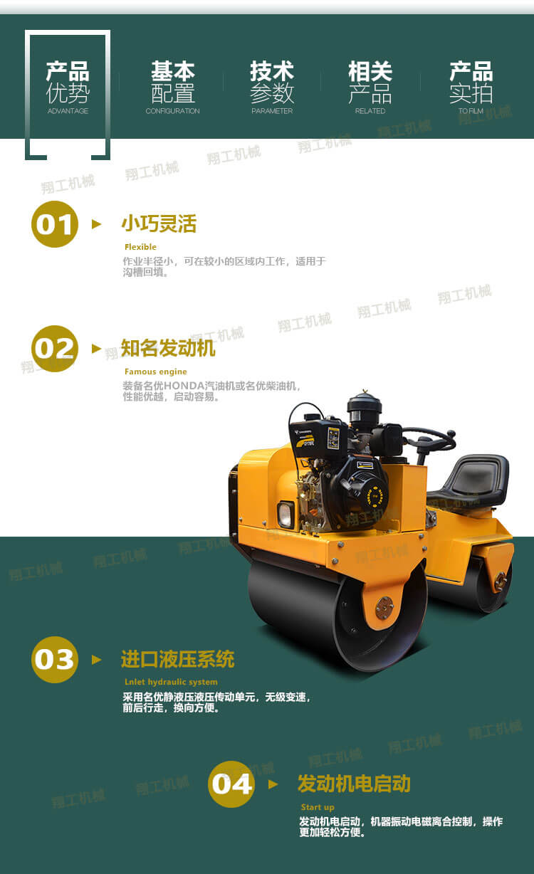 850小型座駕壓路機(jī)其結(jié)構(gòu)緊湊,操作靈活,振動(dòng)力強(qiáng)大廣泛應(yīng)用于狹長(zhǎng)道路壓實(shí),溝槽回填土壓實(shí),草坪整平壓實(shí)和瀝青路面邊角壓實(shí)作業(yè)。