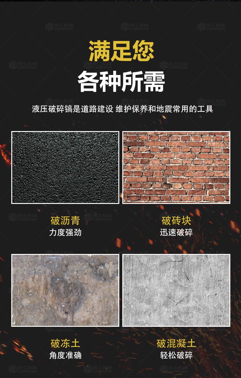 沒(méi)有哪個(gè)破碎鎬工具有液壓破碎鎬那樣的沖擊破碎能力。液壓破碎鎬的功率在所有鎬類工具中是高的,而其工作噪音也遠(yuǎn)比氣動(dòng)工具要小。