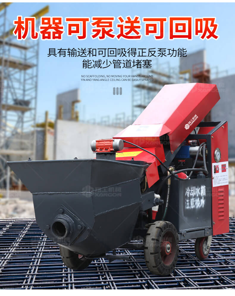 商品預(yù)拌砂漿,石膏砂漿,高標(biāo)號自拌砂漿,高強(qiáng)無收縮灌漿料,自流本機(jī)器采用成熟液壓推進(jìn)技術(shù)、泵車原理,革命性的采用斜體升降式布局,模塊化構(gòu)件,且電機(jī)功率小,揚(yáng)程高、體積小、重量輕等顯著優(yōu)點(diǎn),機(jī)器標(biāo)配全軟管,方便移動易施工,改善了以往砂漿泵的體積笨重、磨損快、難維護(hù)的缺點(diǎn)。