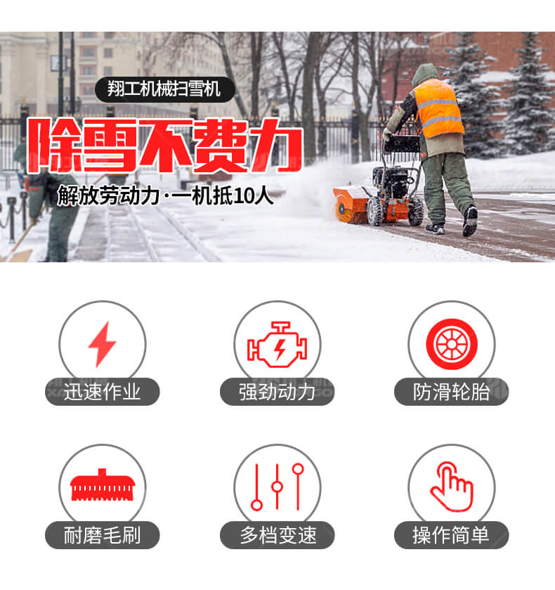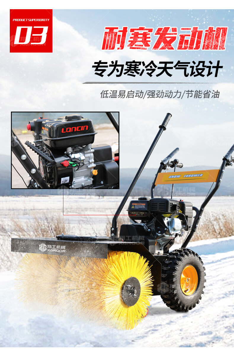1、節(jié)省勞動力,一臺機器能完成至少20個人的工作量 2、節(jié)省管理成本,降低環(huán)衛(wèi)工人的交通事故率 3、清掃人行道等路面非常干凈,不留殘雪