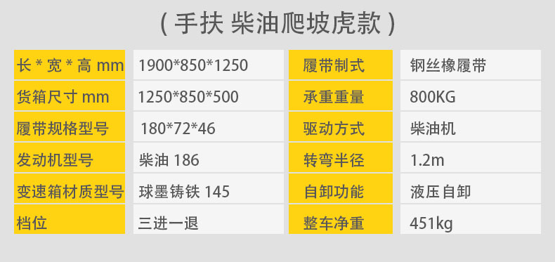 手扶式履帶運輸車它是采用手扶式的方式駕駛,自動靈活,安全可靠,可以在泥濘、結冰道路、沙漠、沼澤以及土質松軟或氣候條件不太好的接近角和離地角行駛。它的性能穩(wěn)定,功能強勁,使用能力進一步提高。運載能力強,爬坡能力大,操作簡單,維修保養(yǎng)容易。