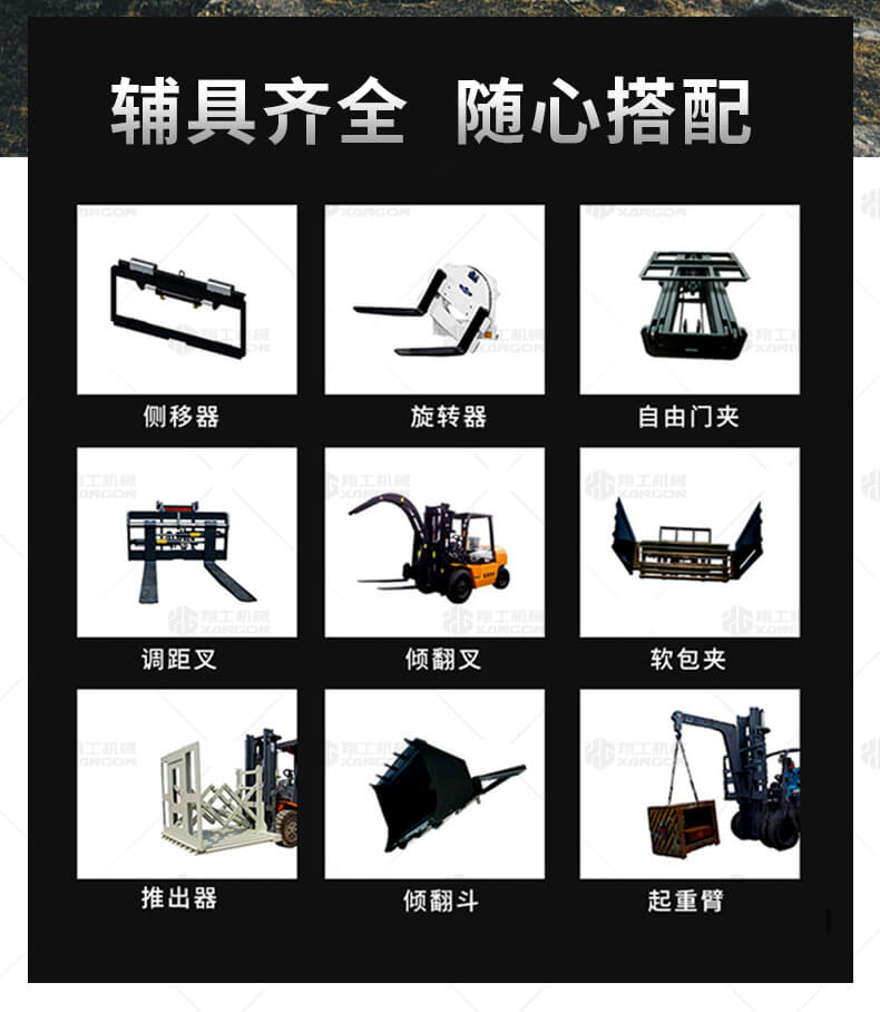 越野叉車可以在坡地和不平地面上進行貨物裝、卸、堆垛及搬運作業(yè),具有良好的機動性、越野性可靠性。其功能多樣,可搭配側移器、調距叉、旋轉器、軟包夾、推出器、側翻叉、側翻斗、起重臂等工具完成不同的工作。