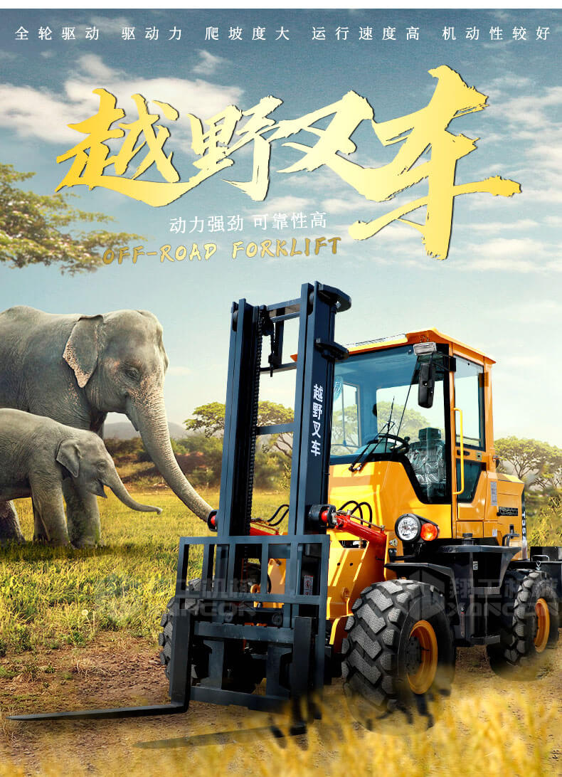 3.普通叉車只能在平整的路面上作業(yè),而越野叉車既可以在普通路面上作業(yè),還可以在山路泥路崎嶇道路作業(yè),輪胎抓地力強(qiáng),不打滑。