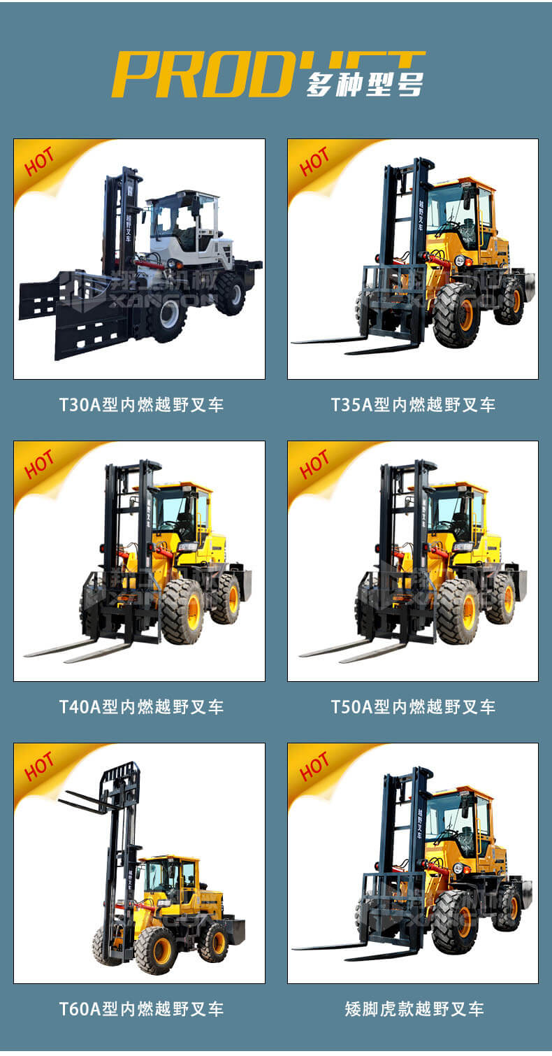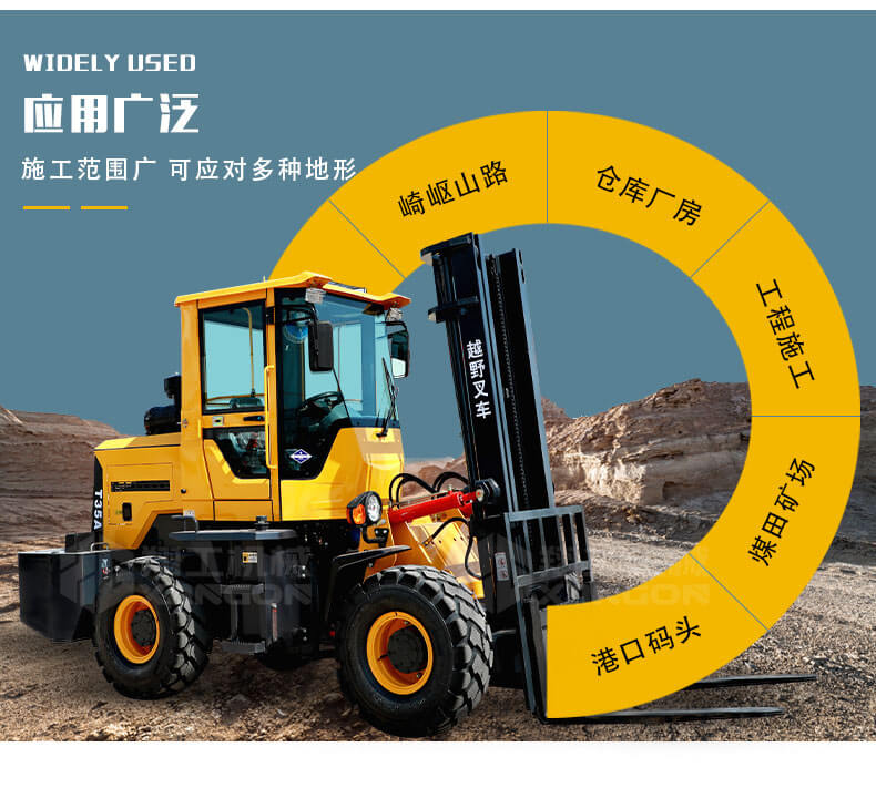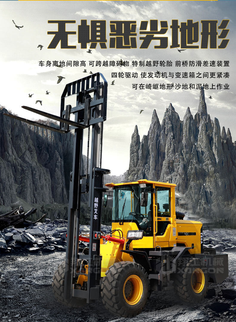 多功能越野叉車可以在坡地和不平地面上進(jìn)行貨物裝、卸、堆垛及搬運作業(yè),具有良好的機(jī)動性、越野性可靠性。其功能多樣,可搭配側(cè)移器、調(diào)距叉、旋轉(zhuǎn)器、軟包夾、推出器、側(cè)翻叉、側(cè)翻斗、起重臂等工具完成不同的工作。