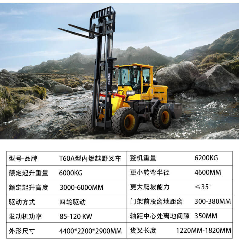 5.越野叉車發(fā)動機(jī)功率大,采用全輪驅(qū)動和越野輪胎。