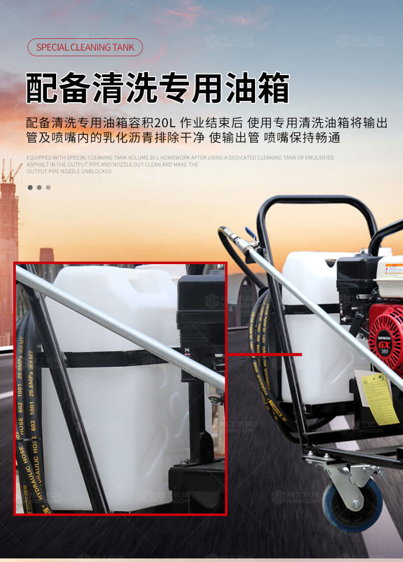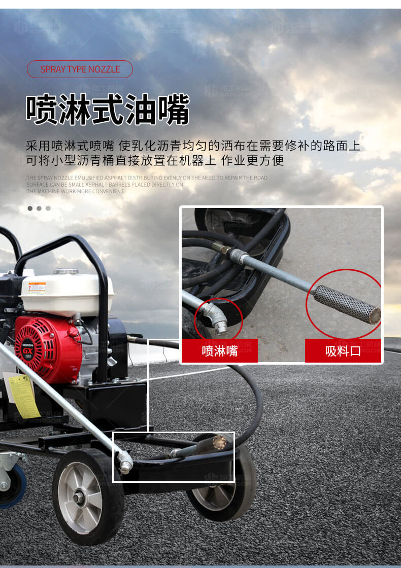 小型乳化瀝青撒布機(jī)用于修補(bǔ)瀝青道路上的坑槽,裂縫或?qū)磳⒗匣穆访孢M(jìn)行表層噴層修復(fù)翻新,由于在養(yǎng)護(hù)瀝青道路時(shí)經(jīng)常需要對(duì)路面均勻噴灑乳化瀝青或防水材料。