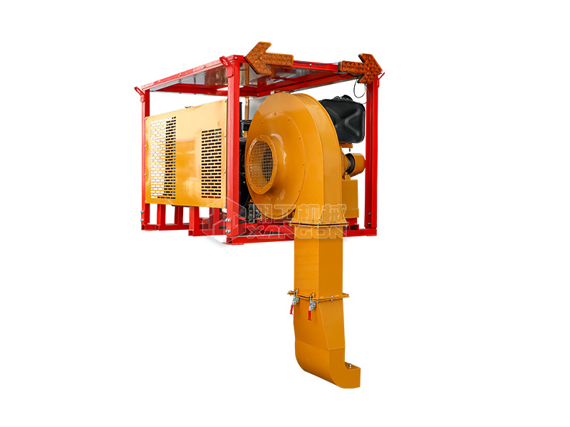 車(chē)載路面面吹風(fēng)機(jī)主要適用于道路路面、貨場(chǎng)碼頭等場(chǎng)合的大面積清掃作業(yè)。主要由機(jī)架、動(dòng)力、傳動(dòng)、風(fēng)機(jī)和控制等五個(gè)主要部分組成,并配有水霧降塵裝置。該機(jī)型采用車(chē)載作業(yè),整機(jī)尺寸小、重量不足700kg,一般的輕型卡車(chē)和微型卡車(chē)均可承載,使用4個(gè)地腳螺栓固定在承載車(chē)廂板上,短期使用亦可使用拉緊器固定。機(jī)架上方四個(gè)角部各有一個(gè)起吊環(huán),可使 用起重裝置方便地吊起。亦可使用叉車(chē)自底座底部叉起。