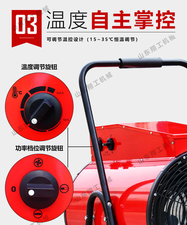15KW電暖風(fēng)機(jī)優(yōu)點(diǎn): 1、純銅全封閉電機(jī) 2、防爆不銹管(不銹管發(fā)熱元件作熱源保證產(chǎn)品的可靠) 3、取暖溫度可自動調(diào)節(jié)(調(diào)節(jié)功率) 4、進(jìn)口溫控器 5、外殼絕緣,防水