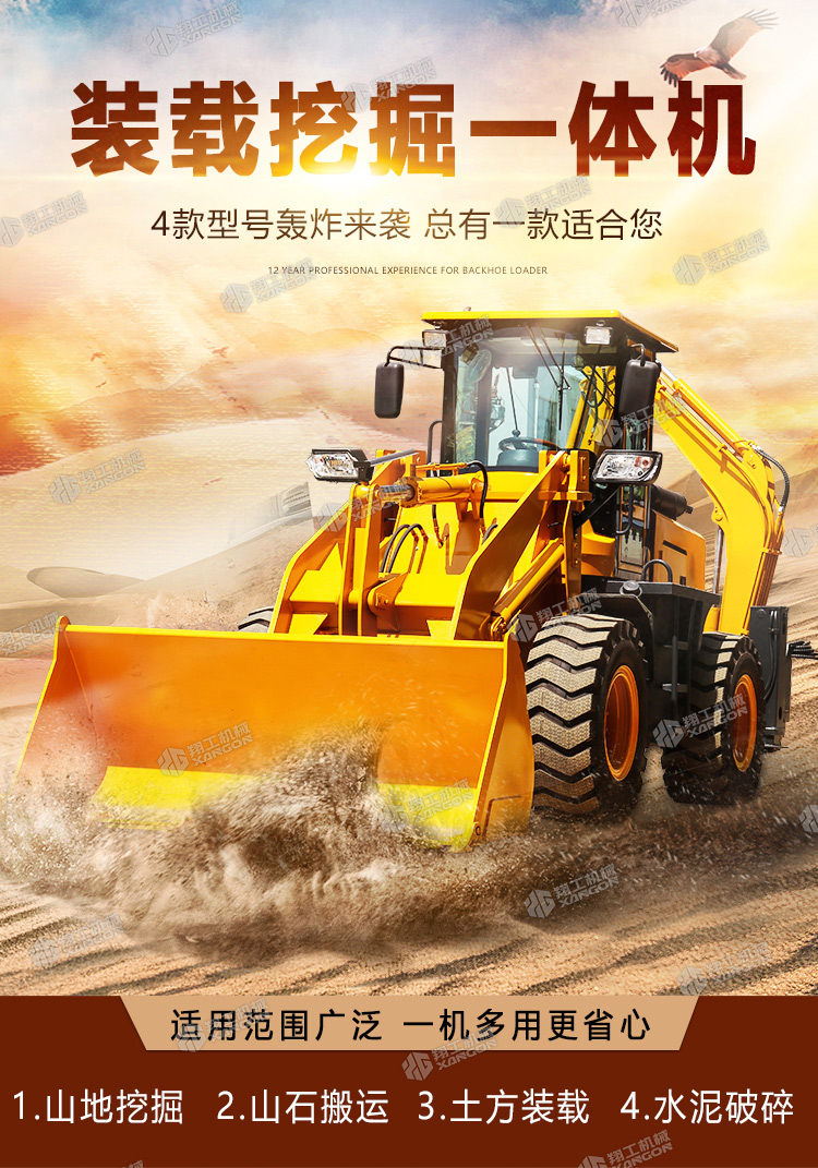 挖掘裝載一體機(jī)俗稱“兩頭忙”。因?yàn)樗哂歇?dú)特的構(gòu)造,前端是裝載裝置,后端為挖掘裝置。在工地內(nèi),您只需要轉(zhuǎn)動(dòng)一下座椅,即可完成從裝載機(jī)到挖掘機(jī)操作手角色的轉(zhuǎn)變?!皟深^忙”屬于小型多功能工程機(jī)械的一種,一般在大工程完成后的小工程中使用。它可配多種工作裝置及輔具,進(jìn)行挖掘、鏟裝、路面破碎、平整場地、開挖溝渠、鋪設(shè)管道等多種作業(yè)。