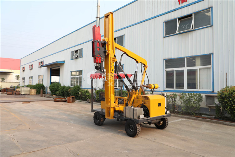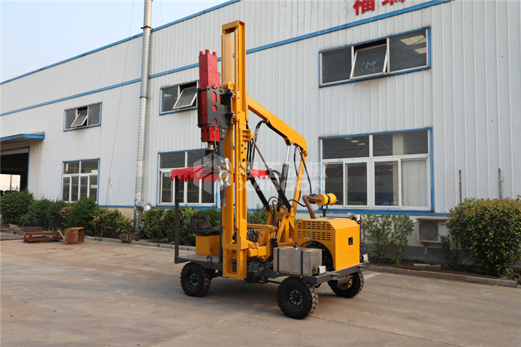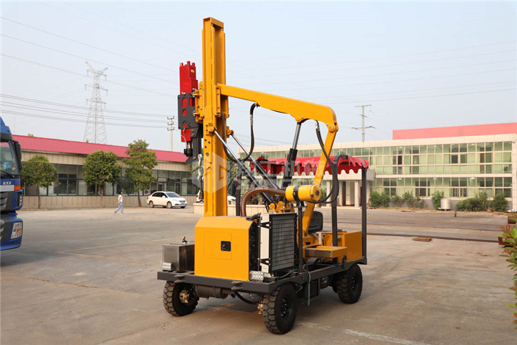 小四輪打樁機(jī)適用于公路護(hù)欄鉆孔、打樁、拔樁,其他各種場地打樁(農(nóng)場、園林、果園),公路野外工程施工。