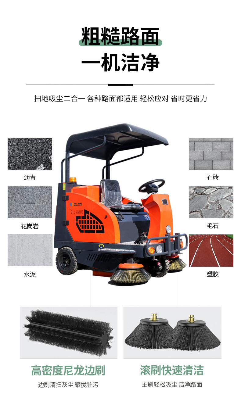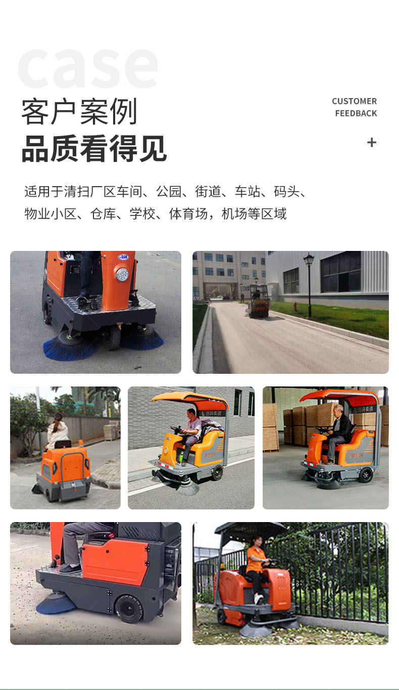 適用場(chǎng)所: 適用于清掃廠區(qū)車間、公園、街道、車站、碼頭、物業(yè)小區(qū)、倉庫、學(xué)校、體育場(chǎng),機(jī)場(chǎng)等區(qū)域。清掃效率是傳統(tǒng)的人工清掃效率的10-12倍,一臺(tái)掃地機(jī)可代替10-12位清潔工人。