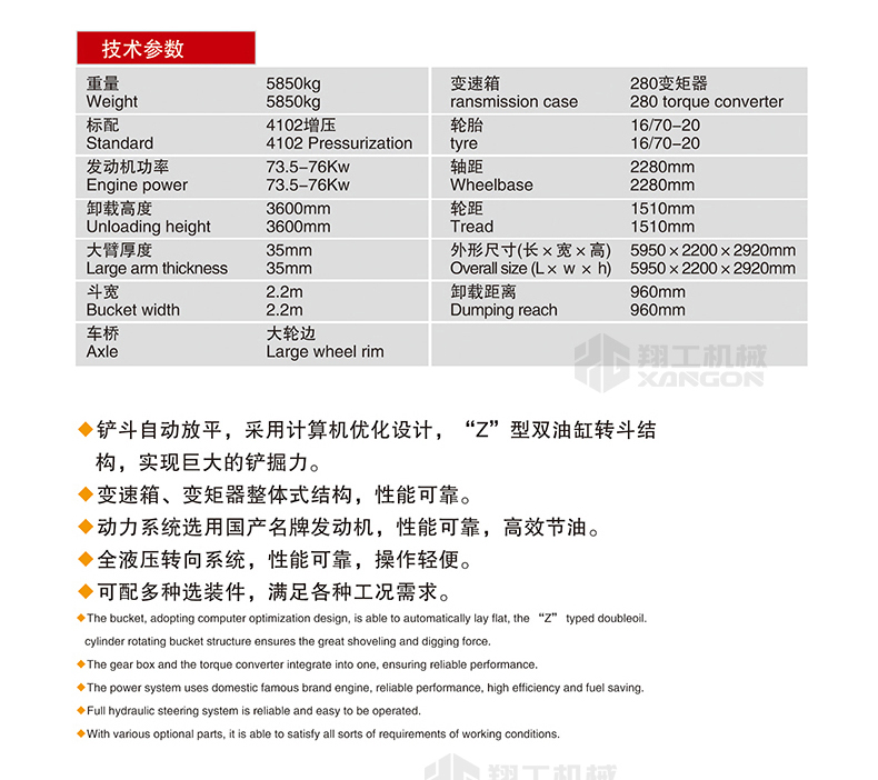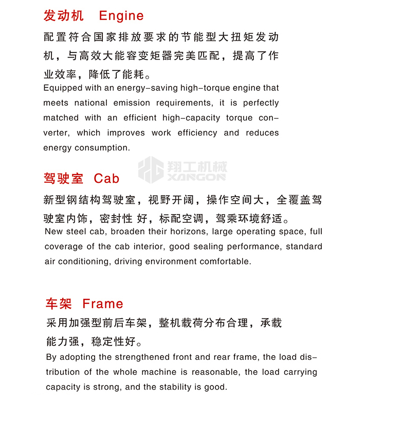 裝載機的作用: 主要用于鏟裝土壤、砂石、石灰、煤炭等散狀物料,也可對礦石、硬土等作輕度鏟挖作業(yè)。換裝不同的輔助工作裝置還可進行推土、起重和其他物料如木材的裝卸作業(yè)。在道路、特別是在高等級公路施工中,裝載機用于路基工程的填挖、瀝青混合料和水泥混凝土料場的集料與裝料等作業(yè)。