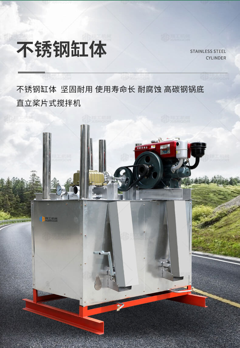 熱熔釜是一款熱熔標(biāo)線施工的主要設(shè)備之一。標(biāo)線施工時(shí),先利用熱熔釜將粉末狀涂料加熱,攪拌,直到熱熔變成液態(tài)后,再將涂料放入劃線機(jī)內(nèi)進(jìn)行劃線施工。