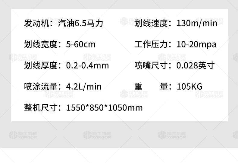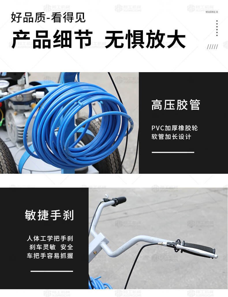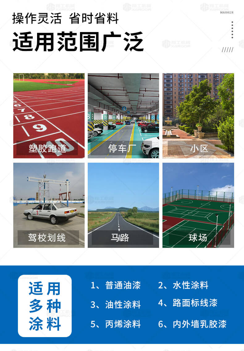 主要用于公路、市區(qū)、停車場、機(jī)場等涂劃直線、虛線、曲線、文字、箭頭等。具有劃線效果好、速度快、效率高、適用范圍廣、使用方便等優(yōu)點(diǎn)。