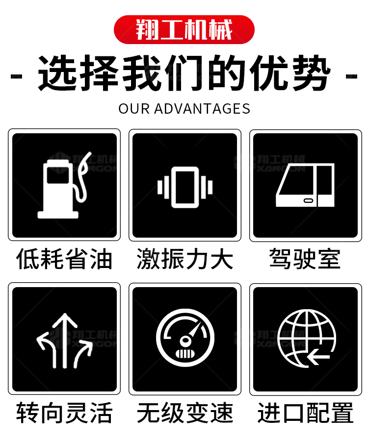 壓路機(jī)液壓振動,激振力大,工作效率高。