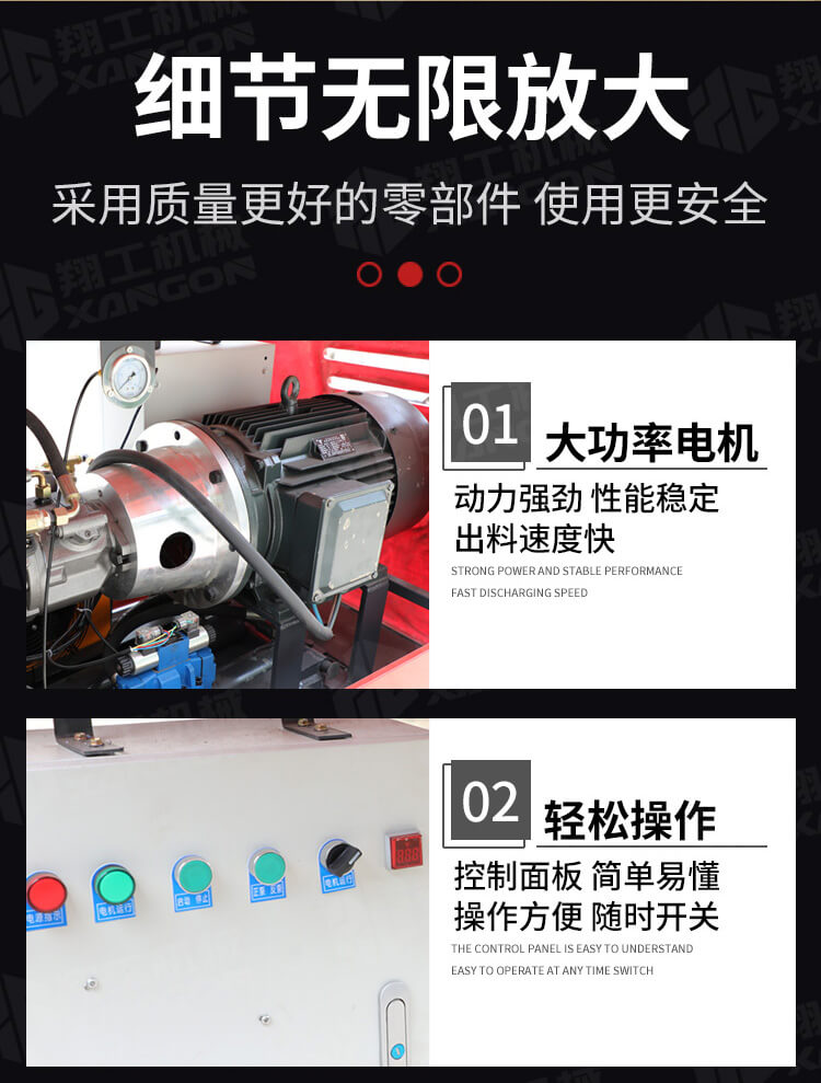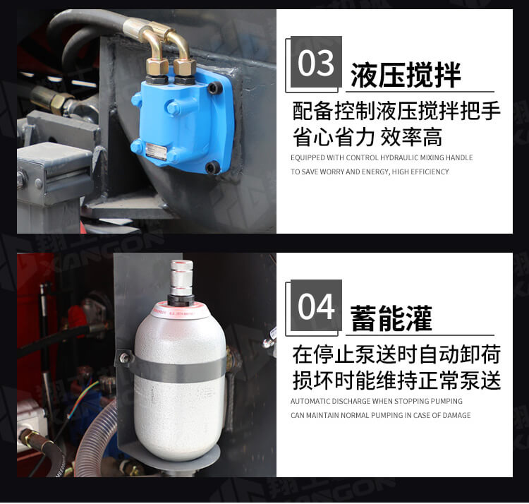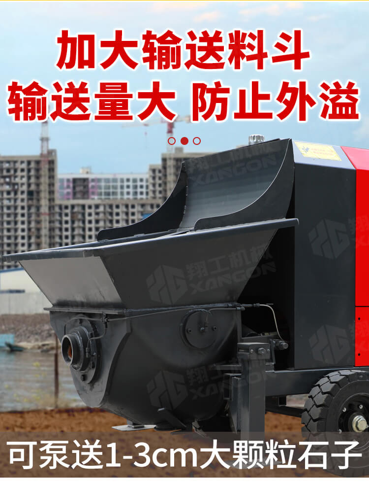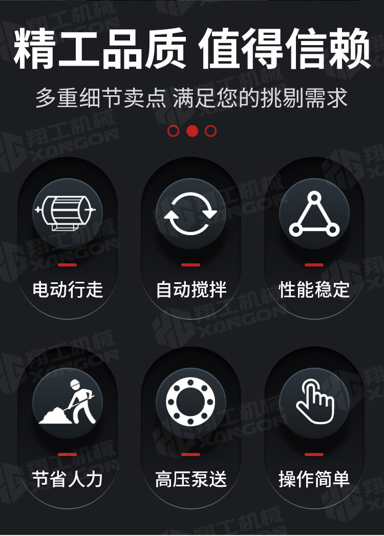 采用獨創(chuàng)的泵車尾輪驅(qū)動系統(tǒng)輕松解決移動時帶來的各種困難;采用雙排風(fēng)冷散熱系統(tǒng)散熱效果更好,液壓系統(tǒng)采用壓力更高,性能更穩(wěn)定的柱塞式自動變量主油泵,采用先進的三維立體壓模一體式自動攪拌料斗可輸送機制砂,高標(biāo)號混凝土,有效緩解積料問題。