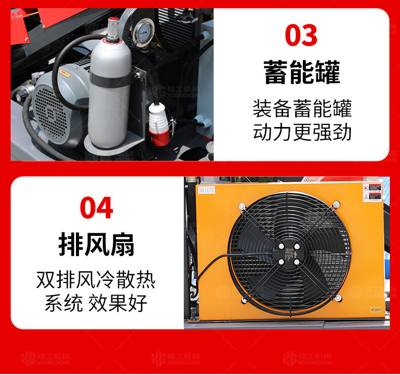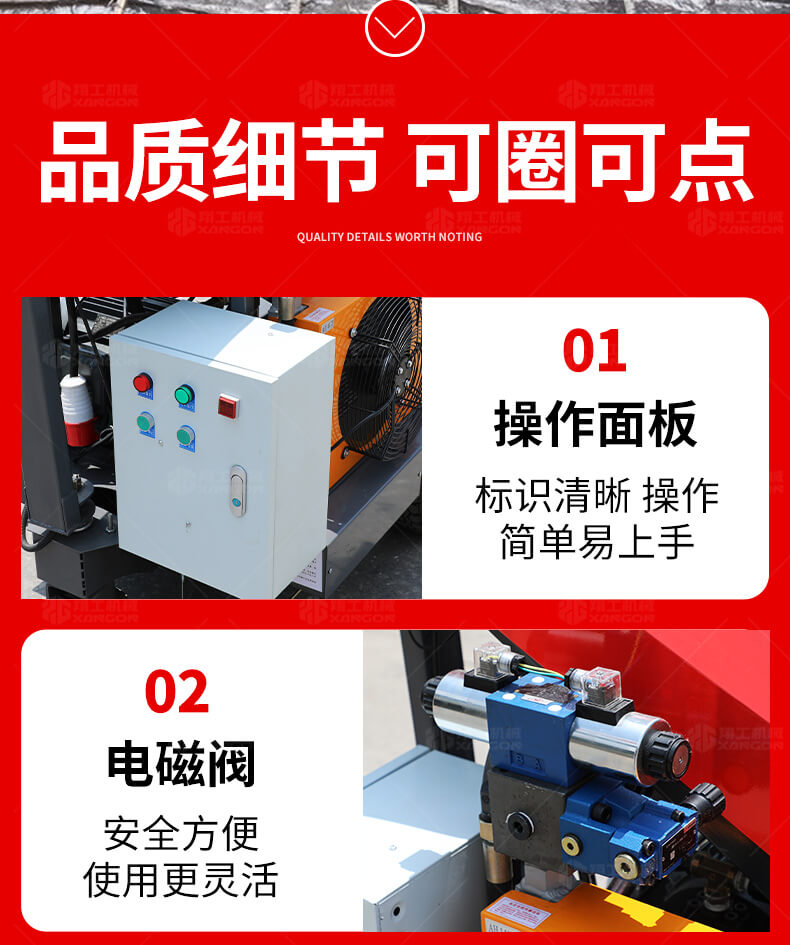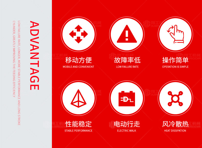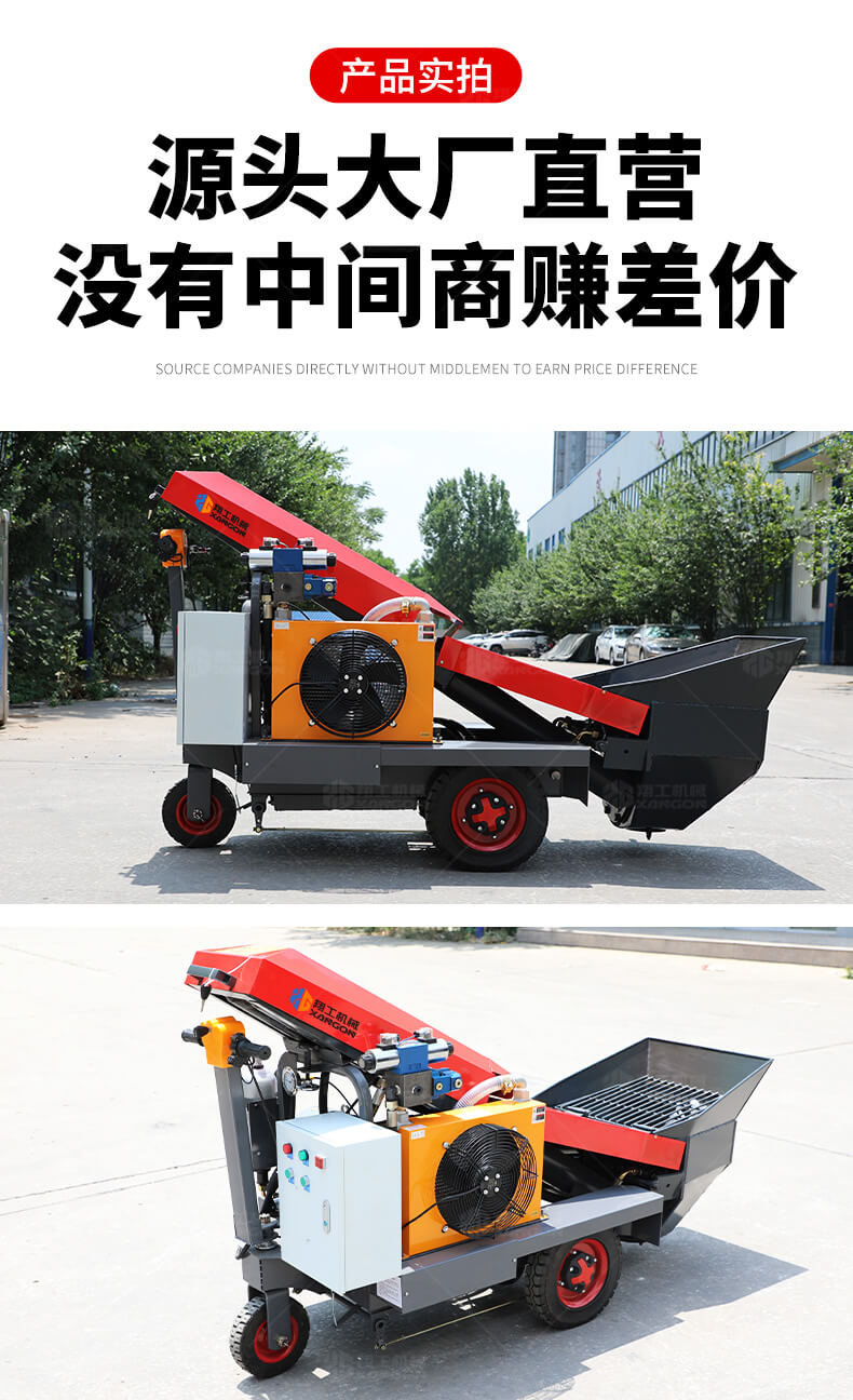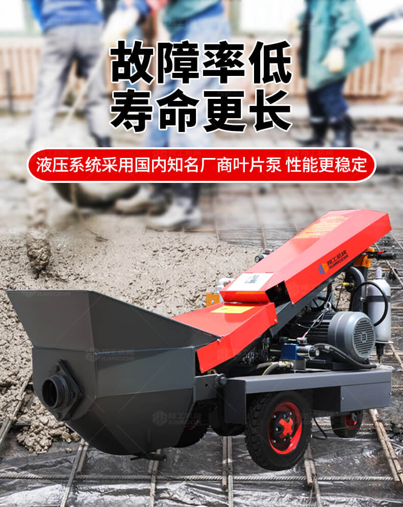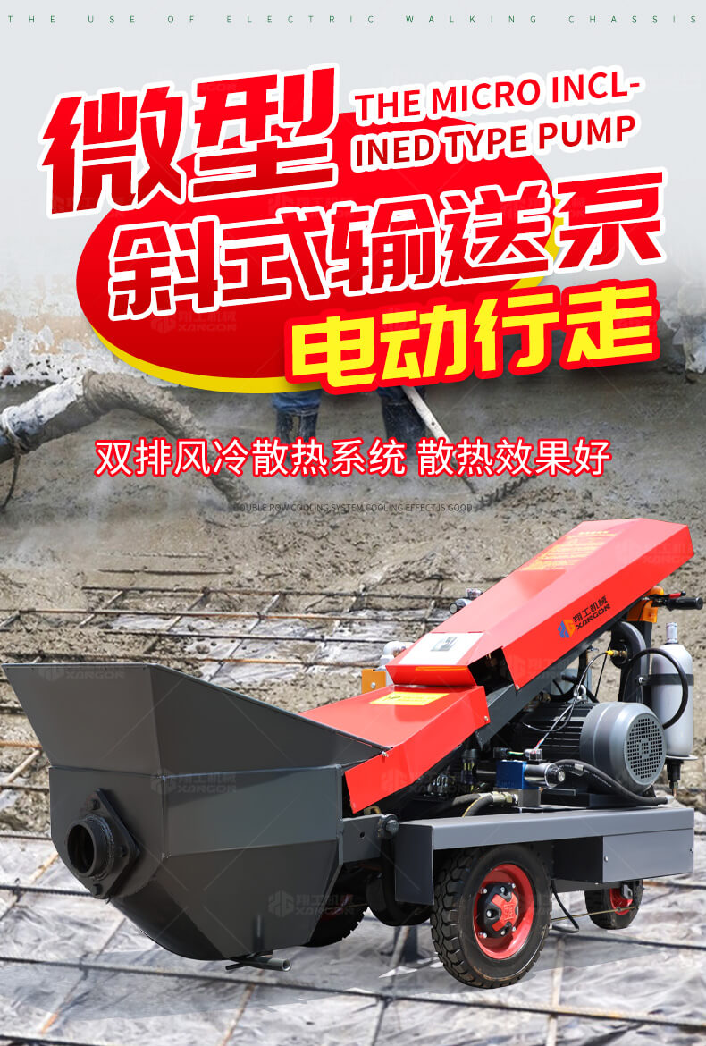 采用電動(dòng)行走底盤(pán),斜體式布局升降料斗,采用雙排風(fēng)冷散熱系統(tǒng)散熱效果更好,液壓系統(tǒng)采用國(guó)內(nèi)知名廠商葉片泵,故障率低,壽命更長(zhǎng),性能更穩(wěn)定,超長(zhǎng)行程料缸大大提高了輸送效率。