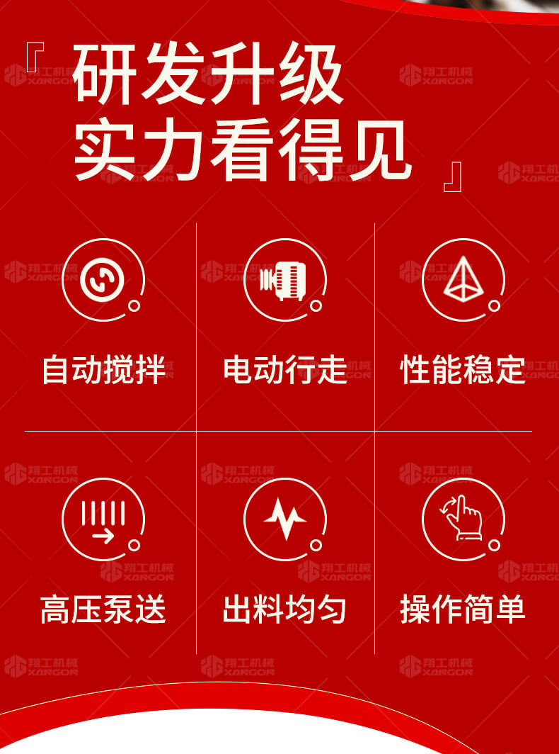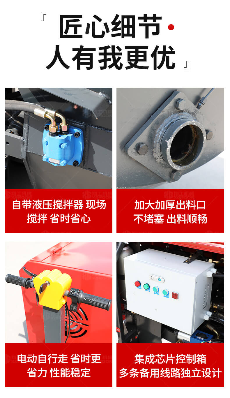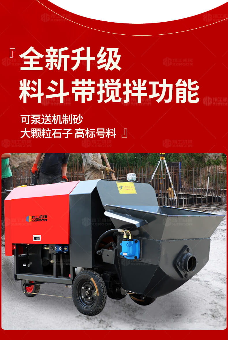 本產(chǎn)品為電動(dòng)行走臥式造型混凝土輸送泵,料斗帶攪拌功能,可泵送機(jī)制砂;風(fēng)冷散熱,散熱效果好;集成芯片控制箱,多條備用線(xiàn)路獨(dú)立設(shè)計(jì),不用擔(dān)心控制系統(tǒng)問(wèn)題;操作部件采用24v 安全感應(yīng)電壓,安全可靠;S 彎采用兩個(gè)單向油缸,速度均勻。