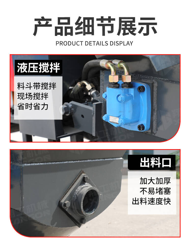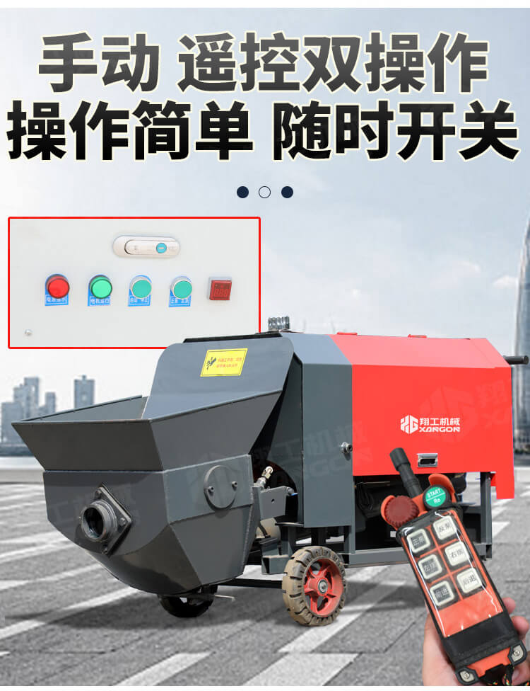 本產(chǎn)品為手推式行走臥式造型輸送泵,料斗帶攪拌功能,可泵送機(jī)制砂;風(fēng)冷散熱,散熱效果好;集成芯片控制箱,多條備用線路獨(dú)立設(shè)計(jì),不用擔(dān)心控制系統(tǒng)問題;操作部件采用24v 安全感應(yīng)電壓,安全可靠;S 彎采用兩個單向油缸,速度均勻。