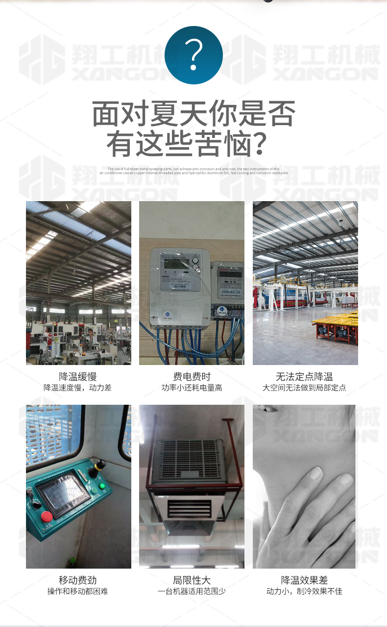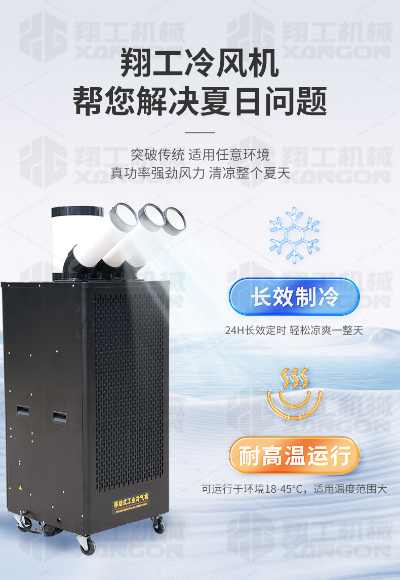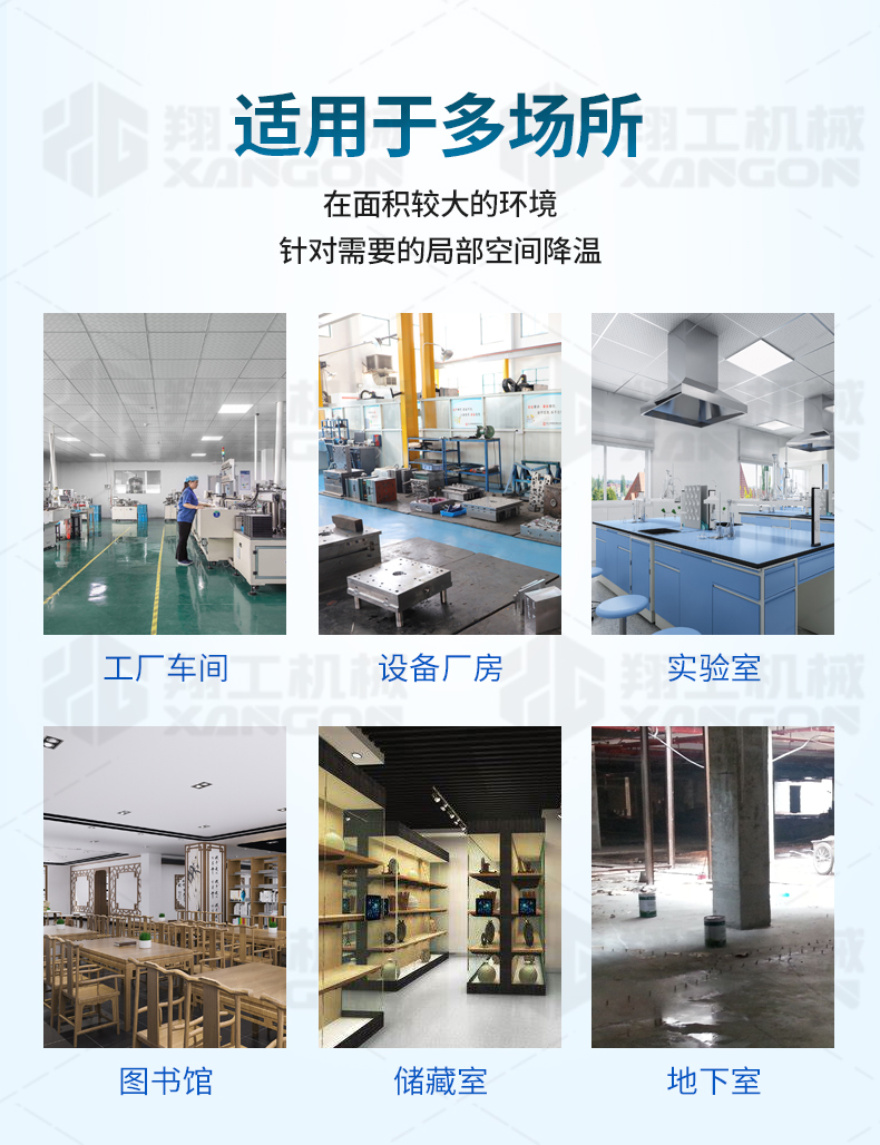 適應(yīng)各種大面積場(chǎng)所快速降溫:辦公場(chǎng)所降溫 汽車維修降溫 車間制冷 室內(nèi)制冷 集裝箱制冷 線上降溫 廚房降溫 車間崗位降溫